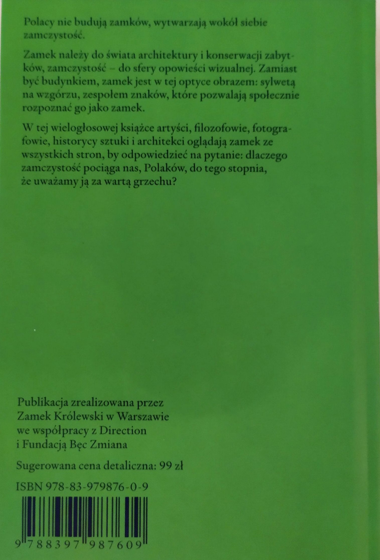 W tej wielogłosowej książce artyści, filozofowie, fotografowie, historycy sztuki i architekci oglądają zamek ze wszystkich stron, by odpowiedzieć na pytanie: dlaczego zamczystość pociąga nas, Polaków, do tego stopnia, że uważamy ją za wartą grzechu?